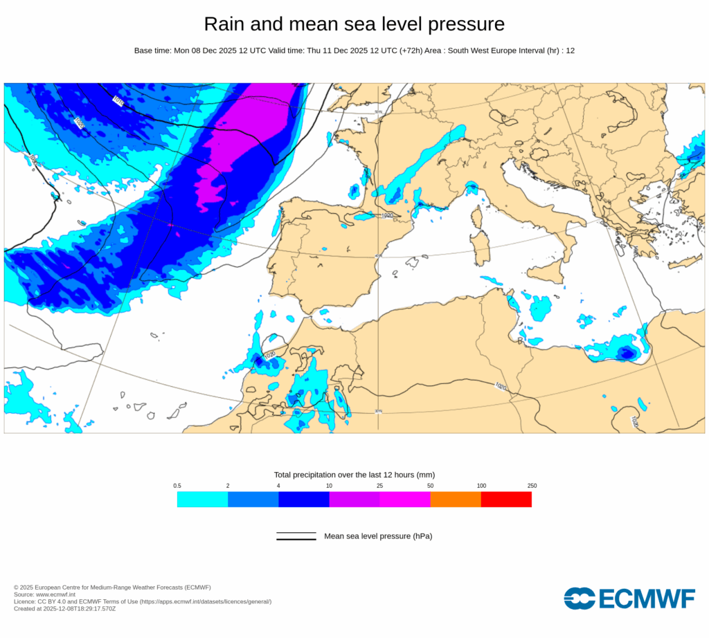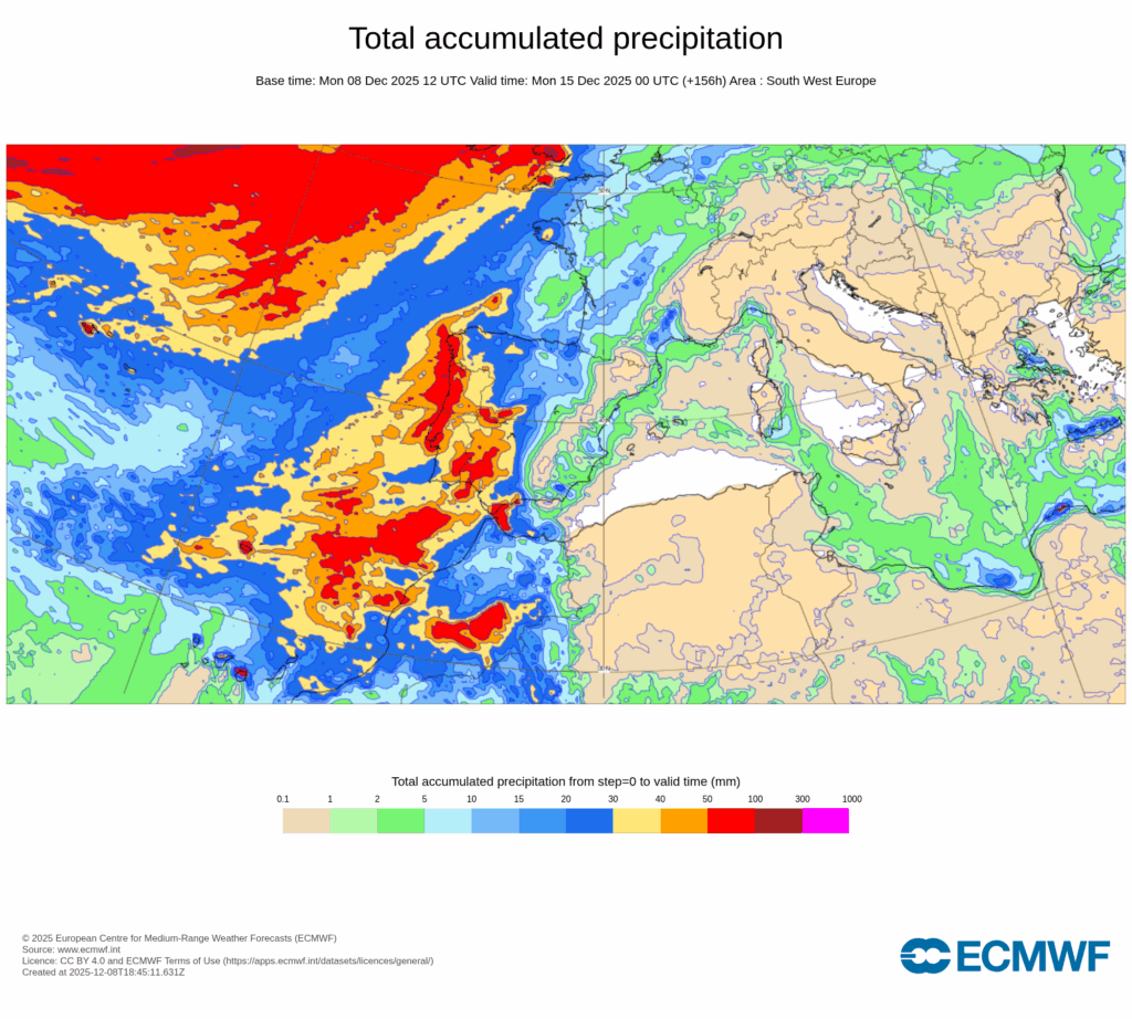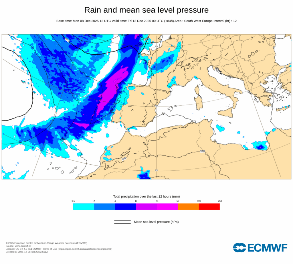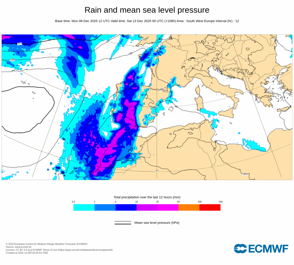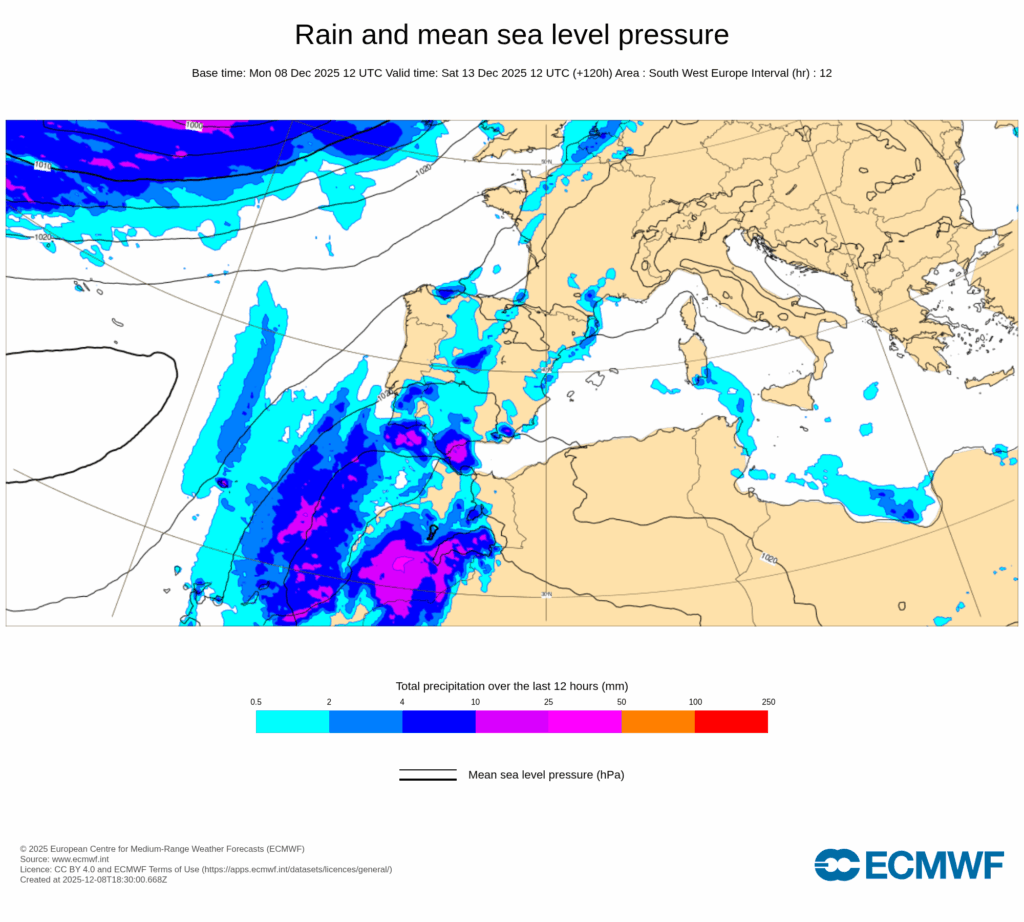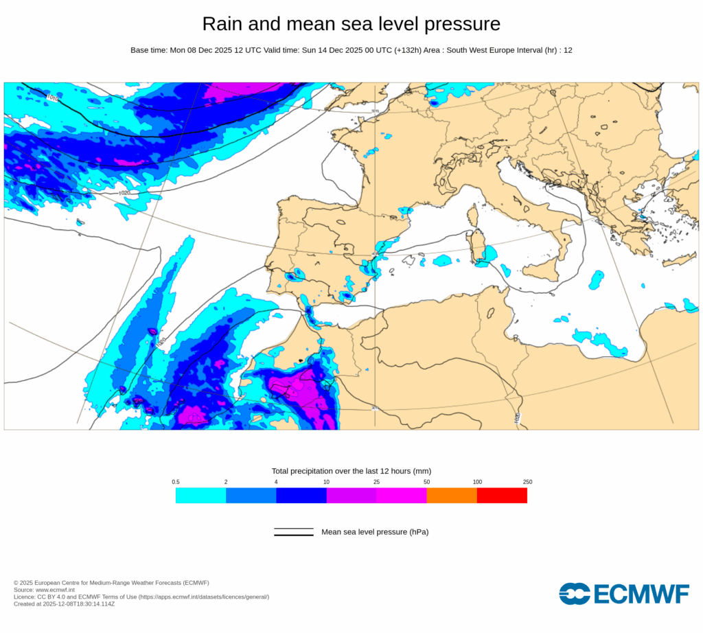 Por último, hay que mencionar que nuevamente los mapas predictivos a largo alcance del Centro Europeo de Predicción apuntan a la formación de bajas presiones en nuestro entorno a medio plazo.