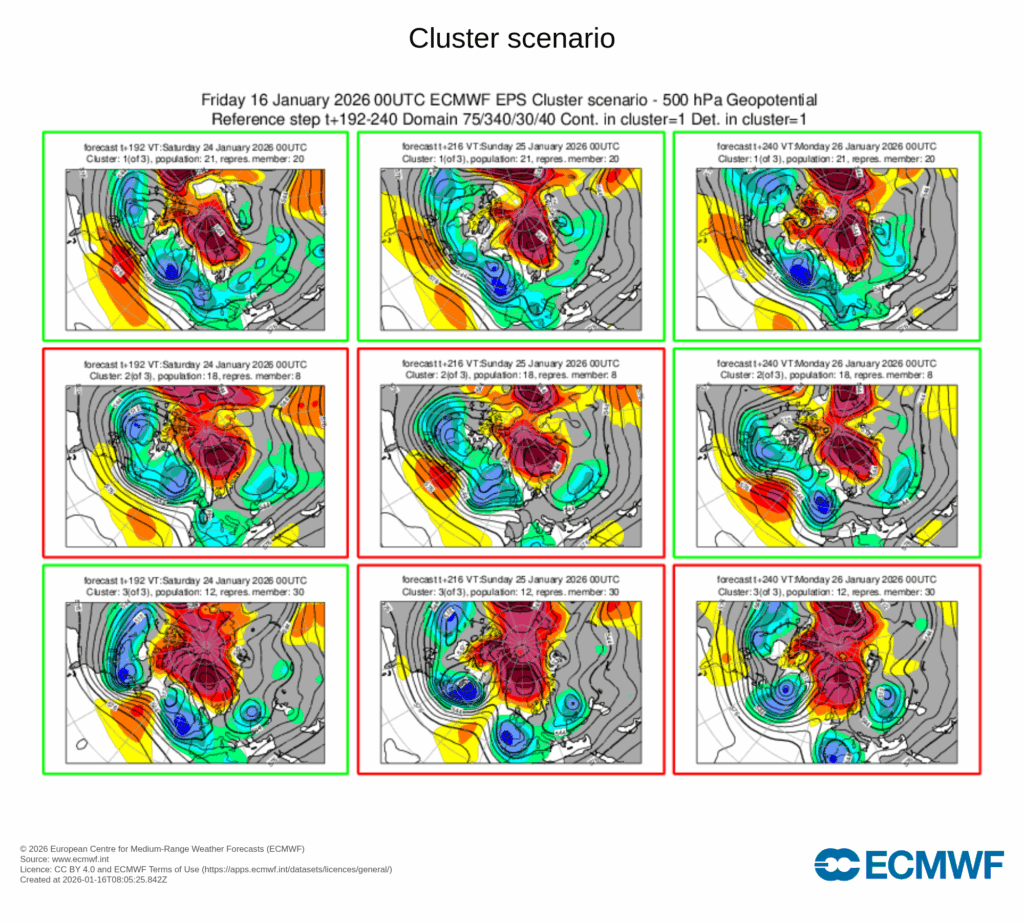 En cualquier caso, los pronósticos a medio-largo plazo nos sugieren que tendremos más temporales en las siguientes jornadas, pues parece, de momento, inamovible el anticiclón que se asienta entre el Ártico y Escandinavia.