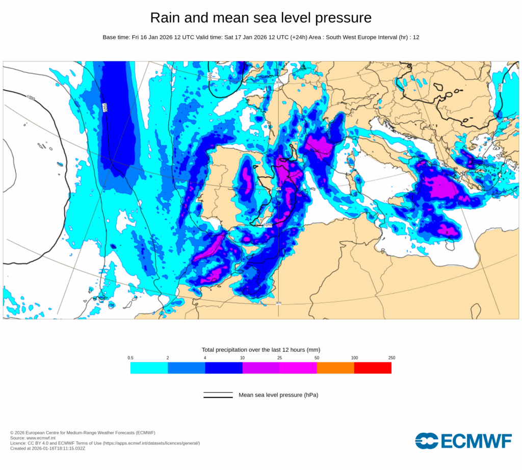 Las previsiones se han cumplido y sobre España y en el sector oriental peninsular en particular, confluirán las bajas presiones atlánticas y el aire frío europeo continental, para dar lugar a una situación atmosférica clásica de enero y febrero en nuestro país.