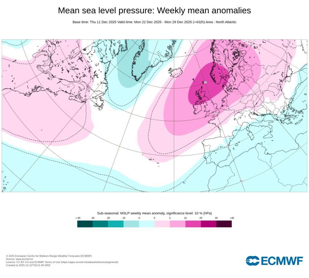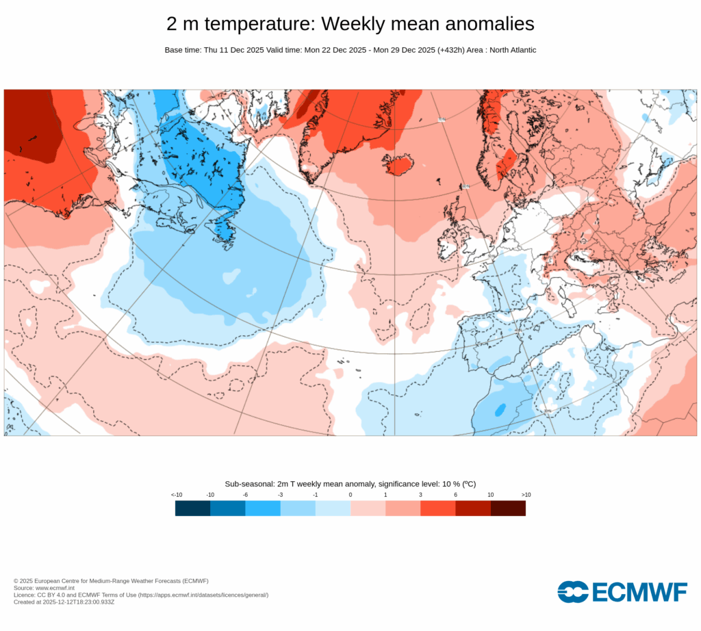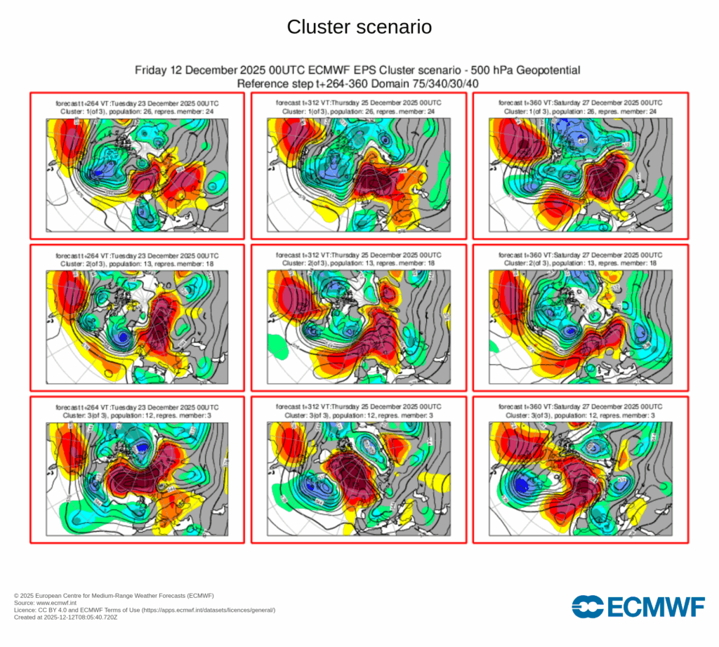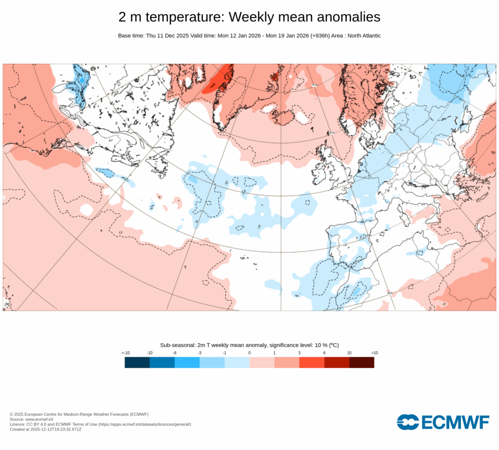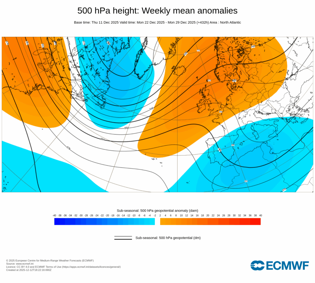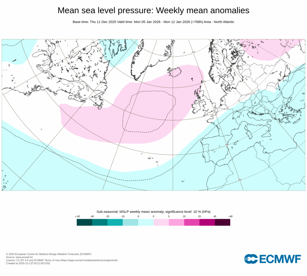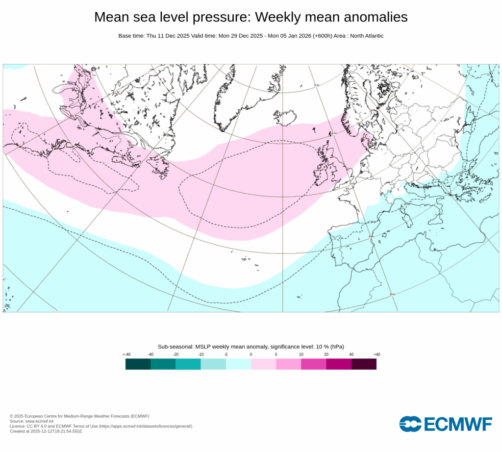 Y avanzando más en el mes y en el arranque de 2026, los mapas a largo plazo dibujan anomalías negativas de temperatura y presión en el sur y suroeste de Europa mientras que persistiría el bloqueo anticiclónico en Escandinavia y en el interior de Europa, con lo que es de esperar la continuidad del tiempo inestable y frío en buena parte de España.