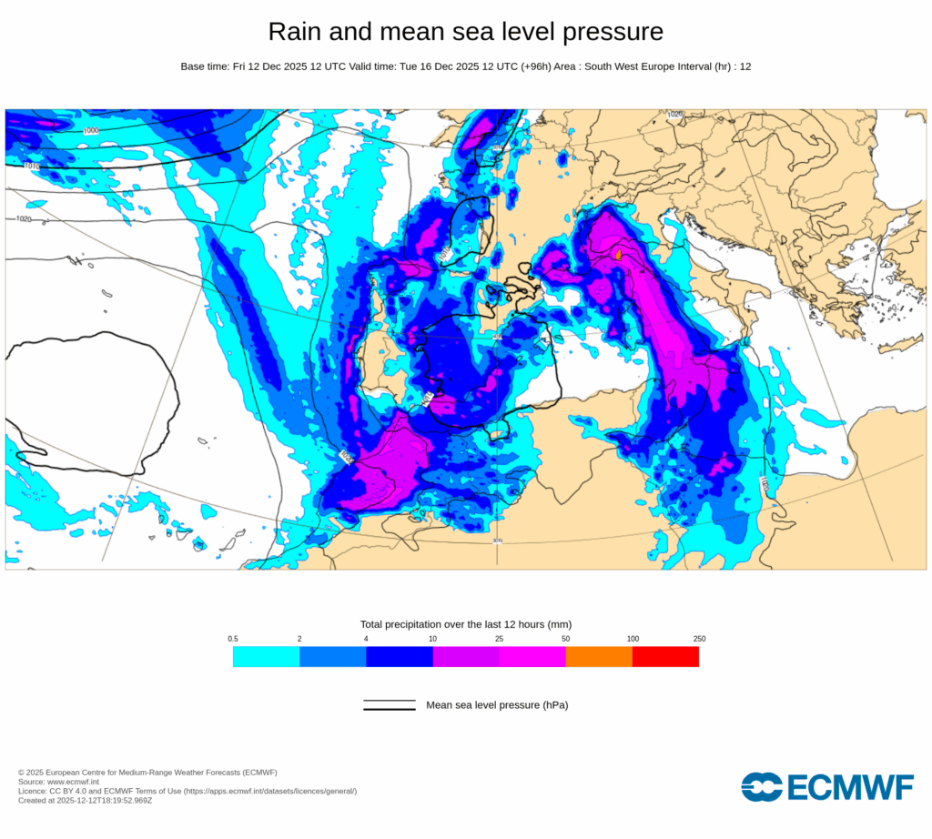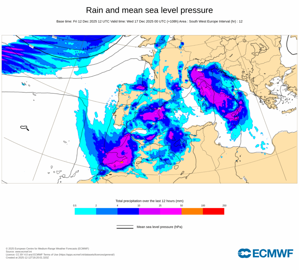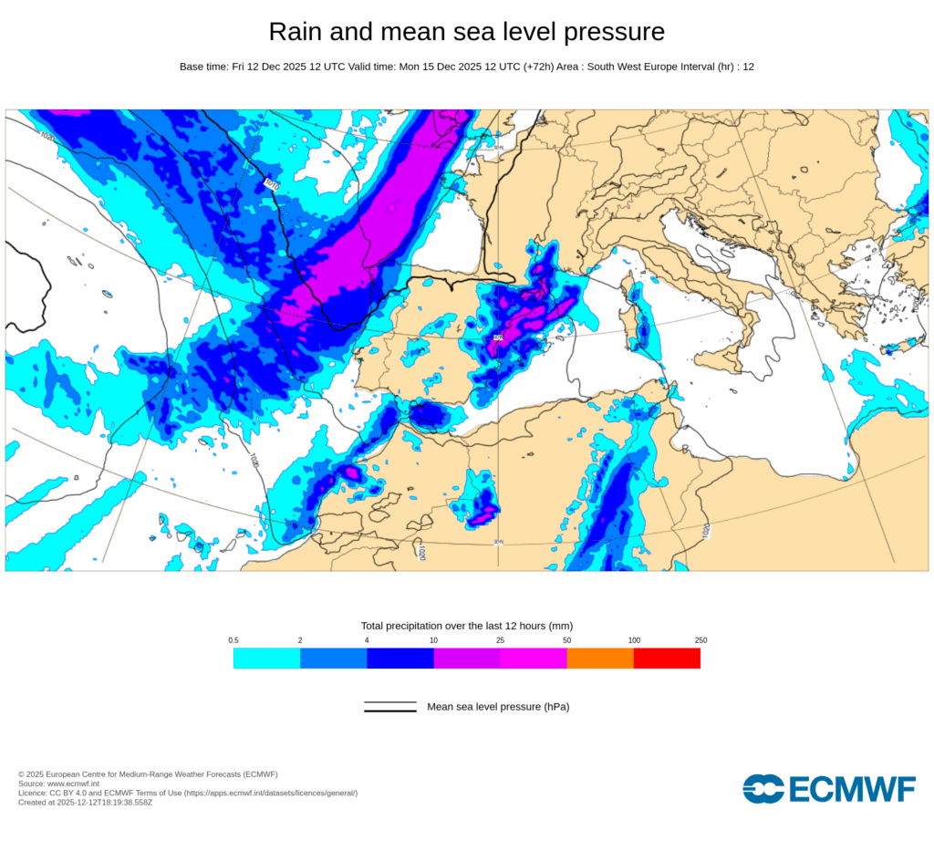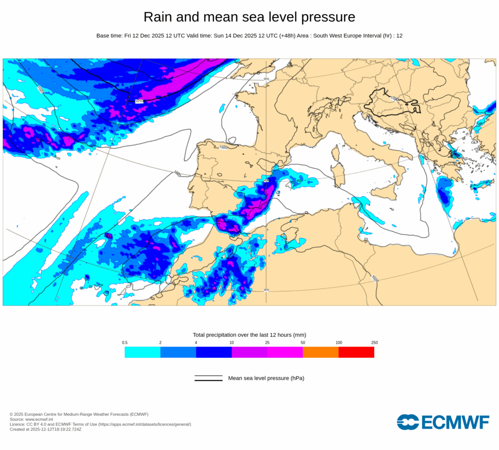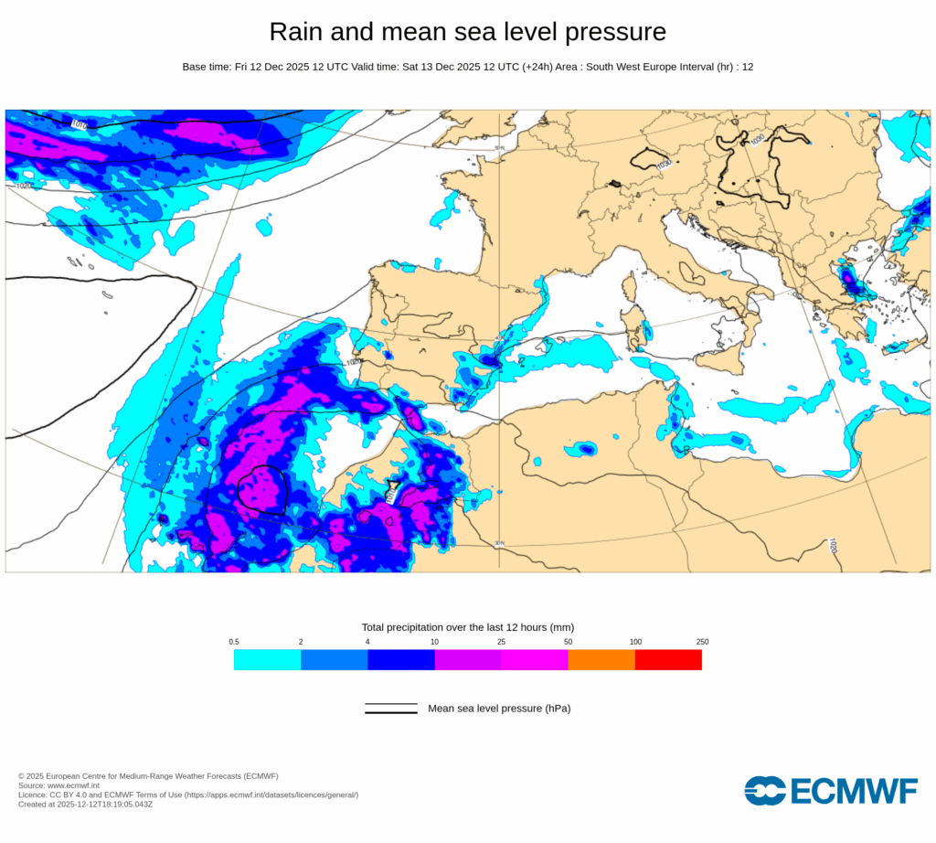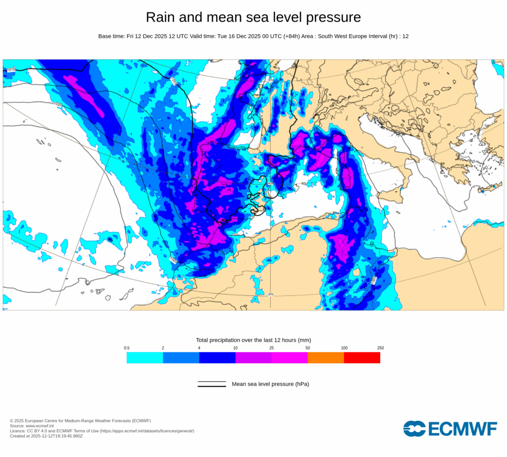 Emilia promete dejar un temporal de viento y lluvia al sur de la Península y en las Islas Canarias, mientras que los mapas, a más largo plazo, auguran anomalías negativas de presión y temperatura en España para el segundo tramo de diciembre e inicio de enero.