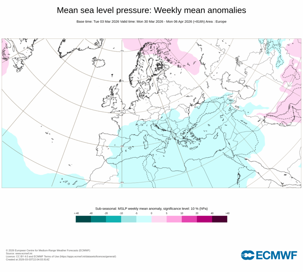 De momento, la atmósfera arrancará en marzo con síntomas crecientes de inestabilidad que deberían de mantenerse hasta el 20 de marzo, aproximadamente, si hacemos caso a los actuales pronósticos que dibujan anomalías negativas de presión muy claras en el entorno de España.