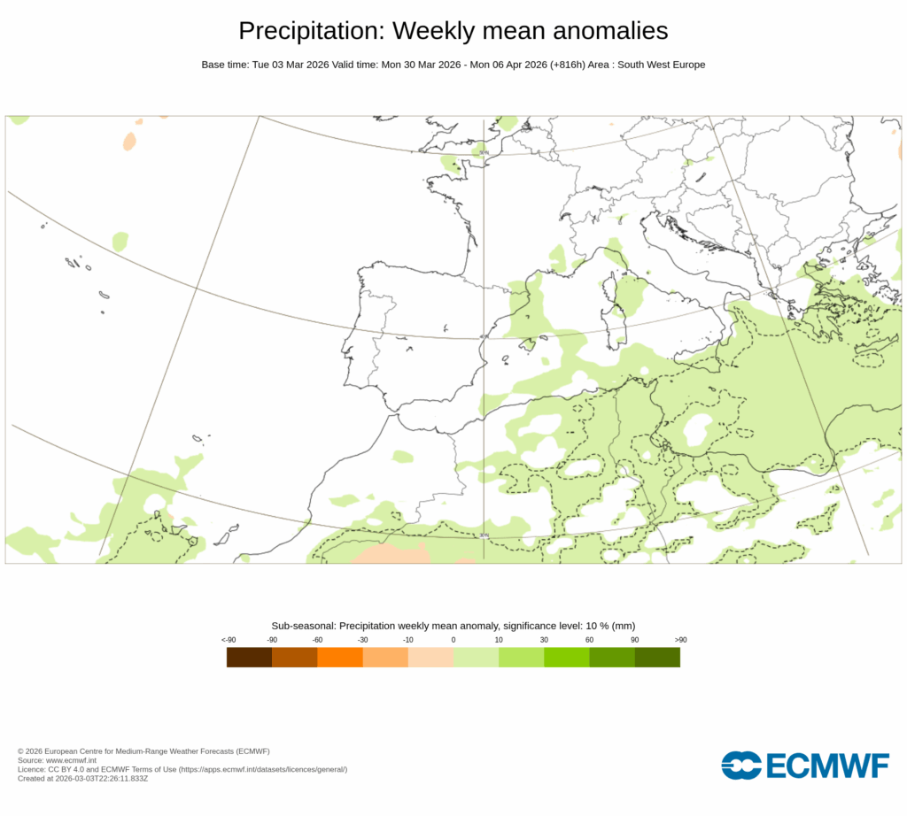 Aunque no es ninguna regla escrita, el hecho de que marzo arranque tan húmedo, nos hace pensar que con el paso de las semanas la evolución natural de la atmósfera, tienda a que se estabilice la misma, al igual que ha ocurrido tras el período húmedo de enero-incio de febrero y la ventana de estabilidad que se ha abierto en la segunda mitad de febrero.