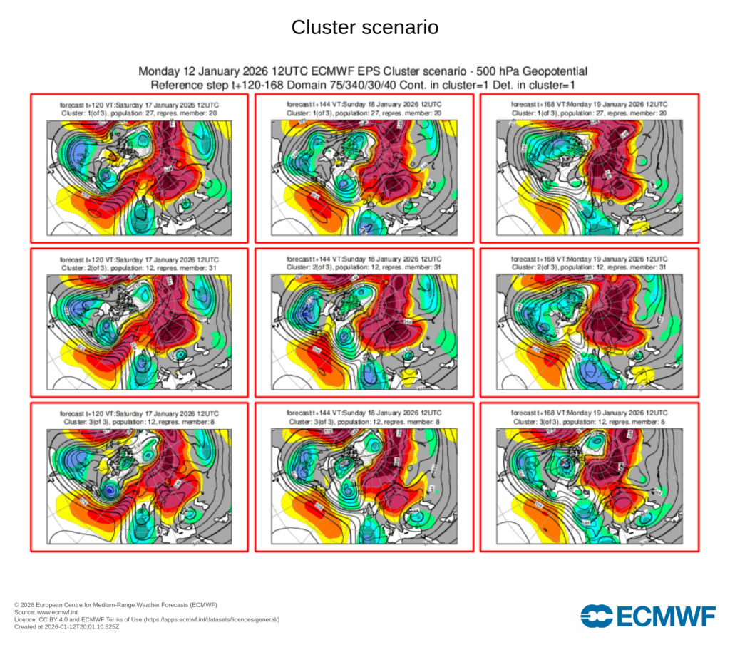 Esto será posible por la aparición de un anticiclón en Escandinavia y a la retirada parcial del anticiclón de las Azores que obligará a las borrascas a moverse de nuevo más al sur, a la par que el bloqueo escandinavo impulsará aire frío hacia el sur del continente.
